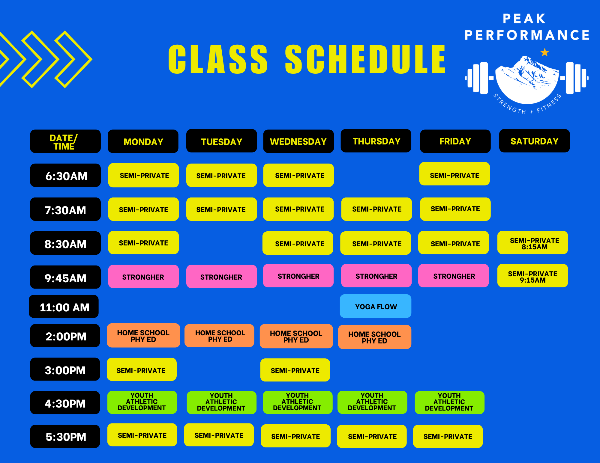 To find the most up to date schedule, please call the gym (907) 376 7325 Sign up for our monthly newsletter Subscribe Sign up with your email address to receive news and updates. First Name Last Name Email Address Sign Up We respect your privacy. Thank you! You should hear from us within 48 hrs